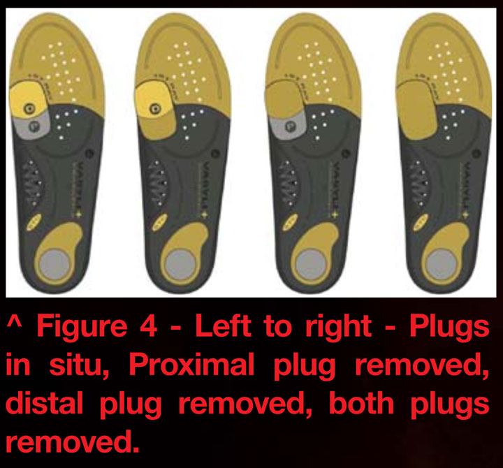 In order to address these issues, careful biomechanical evaluation of the lower extremity is essential. Motion of the pivotal segments of the ankle and MTP joint must be assessed so as to determine the impact any restriction may have on lower back mechanics. Should Fhl be detected, then, appropriate modification of foot orthoses is critical to re-establish proper MTP joint mechanics. This is the entire purpose of the Vasyli-Dananberg orthotic device. By utilizing a multi stage removable plug on the plantar surface of the 1st metatarsal head, adequate plantarflexion can be restored and Fhl and its sequealae prevented.